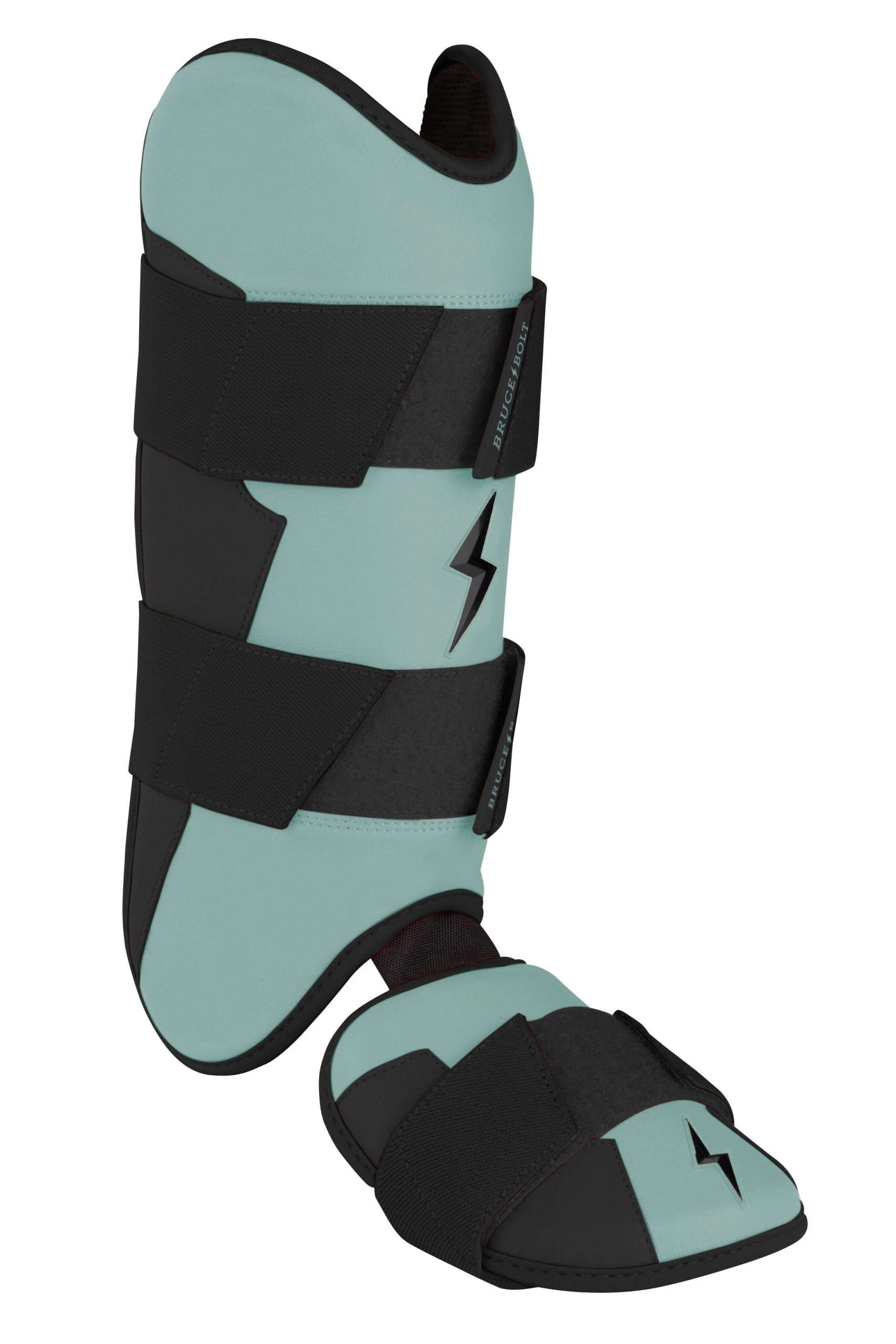BRUCE BOLT’s PREMIUM PRO Leg & Ankle Guards feature a semi-moldable thermoplastic protective shell with a Cabretta leather outer and “Shark Skin” inner to keep the guard in place at the plate and while running the bases. 2″ wide removable elastic strap locks the Leg guard in place providing maximum protection at the plate.