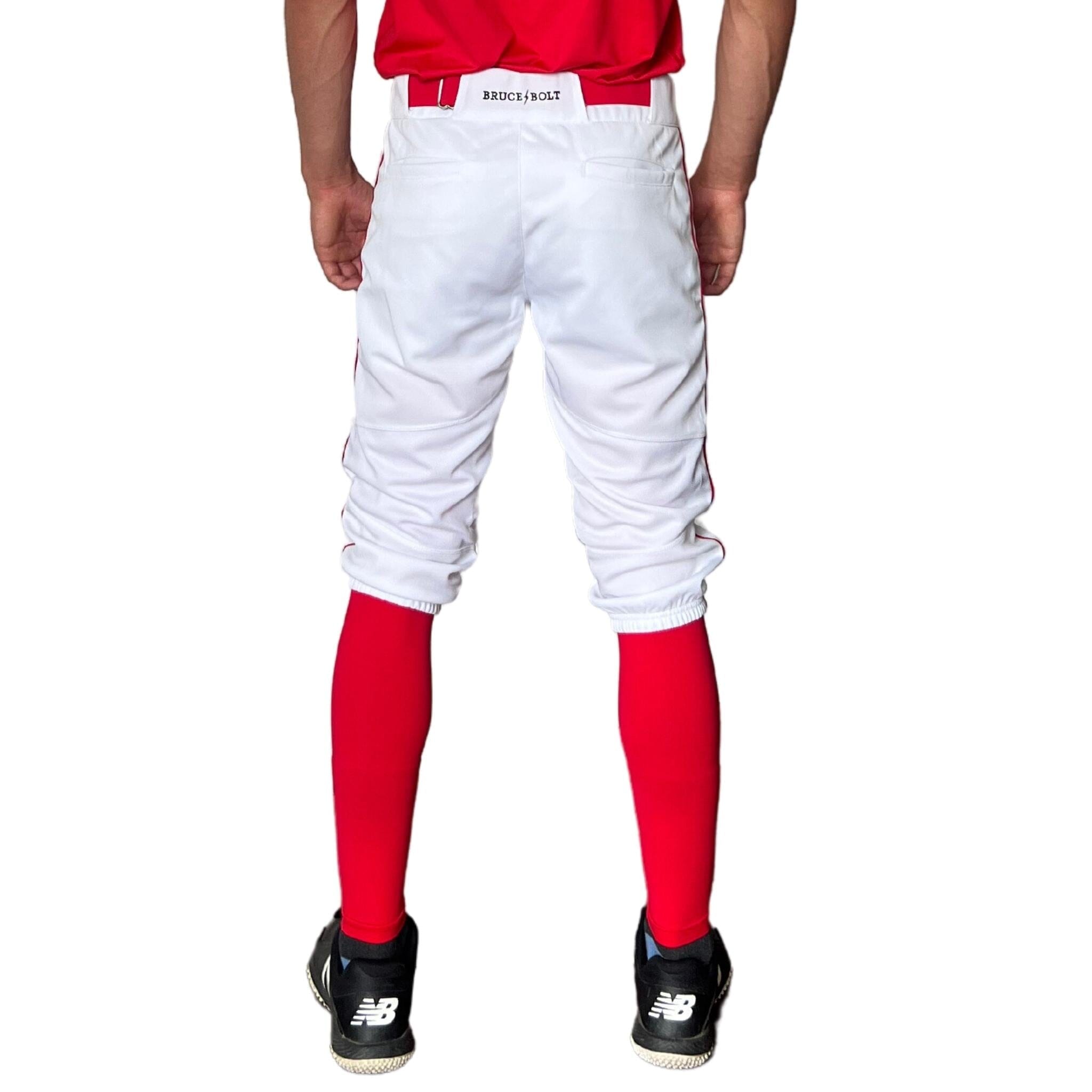 BRUCE BOLT Premium Pro Baseball Knicker – WHITE w/ Red
