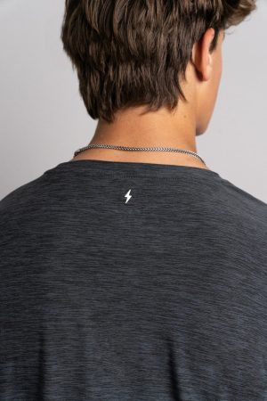 Our graphic tees are subtle with either a tonal BOLT logo or BRUCE BOLT wordmark on the chest and small 3D silicone BOLT on the back of the neck.