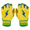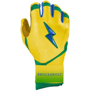 HIGHEST QUALITY, MOST DURABLE BATTING GLOVE IN BASEBALL: Each pair of BRUCE BOLT batting gloves are handmade by skilled craftsmen using only the highest quality 0.9mm Cabretta leather and stitching techniques which makes our gloves buttery soft but more durable than any other glove on the market.