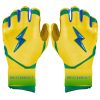 HIGHEST QUALITY, MOST DURABLE BATTING GLOVE IN BASEBALL: Each pair of BRUCE BOLT batting gloves are handmade by skilled craftsmen using only the highest quality 0.9mm Cabretta leather and stitching techniques which makes our gloves buttery soft but more durable than any other glove on the market.